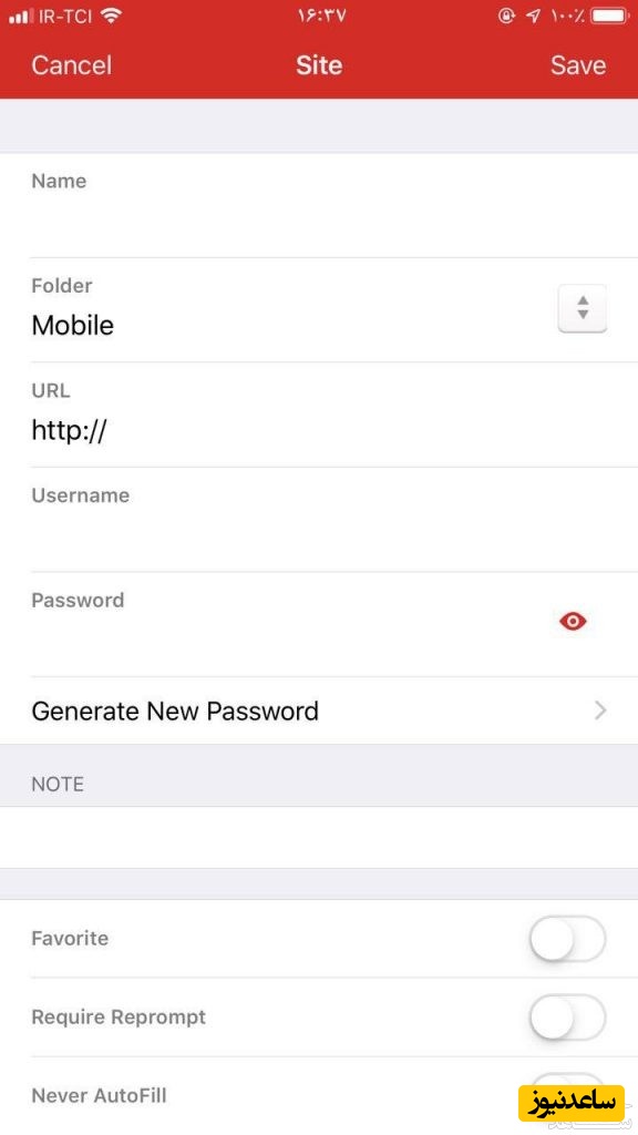 حالا رکوردی که وارد کرده اید باید در قسمت Valut و بخش Sites اپلیکیشن LastPass شما قابل مشاهده باشد. تا اینجای کار در اندروید و ios تقریباً یکسان است. اما از اینجا به بعد تفاوت هایی وجود دارد که ذکر می کنیم.