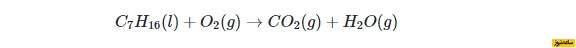 در اثر سوختن کامل هر نوع هیدروکربن با مقدار کافی از اکسیژن، دی اکسید کربن و آب تولید می شود. واکنش بالا موازنه نیست. تعداد اتم های کربن، اکسیژن و هیدروژن در طرف چپ معادله، با تعداد آن ها در طرف راست معادله، برابر نیستند. بنابراین، مقدار ضرایب پشت واکنش دهنده ها و فرآورده ها باید به گونه ای تنظیم شوند تا اتم ها در هر دو طرف، مقدار یکسانی داشته باشند.