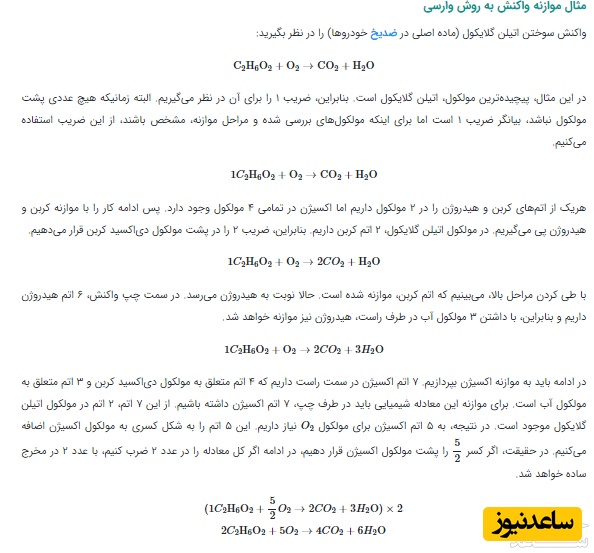 اتم با کمترین تعداد در این ترکیب را در دو طرف موازنه کنید. برای این کار، می توان از ضرایب کسری نیز کمک گرفت.