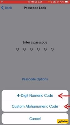 در اینجا شما باید یک پسورد انتخاب کنید. البته شما با استفاده از گزینه Passcode Options می توانید انتخاب کنید که رمز شما 4 رقمی باشد یا داخلش حروف هم داشته باشد.