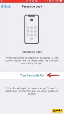 نکته : رمز عبوری که وارد میکنید را فراموش نکنید، زیرا اگراین اتفاق بیافتد شما نمیتوانید واتساپ را باز کنید یا رمزعبور را غیرفعال کنید.