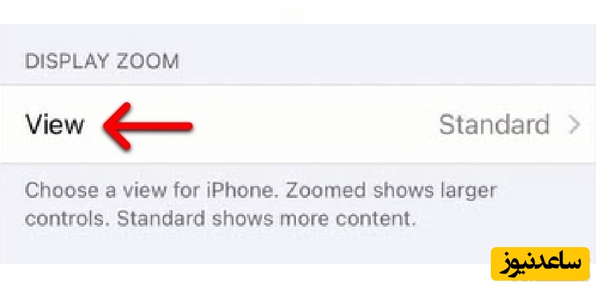DISPLAY ZOOM: این گزینه به طور پیش فرض روی استاندارد است اما می توانید با انتخاب گزینه Zoomed تمام اجزا صفحه (آیکون ها، نوشته ها و …) را کمی بزرگتر کنید.