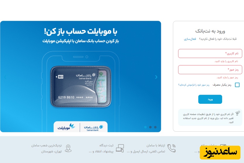 این مرحله ابتدایی فرآیند فعالسازی است. مشتری باید به سایت یا اپلیکیشن اینترنت بانک سامان دسترسی پیدا کند. از طریق لینک زیر میتوانید به نت بانک ورود پیدا کنید.