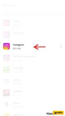 اکنون اپلیکیشن instagram را انتخاب نمایید.