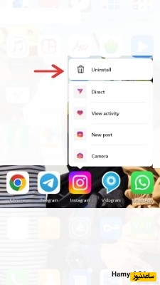ابتدا انگشتتان را روی آیکون اینستاگرام نگه دارید.
