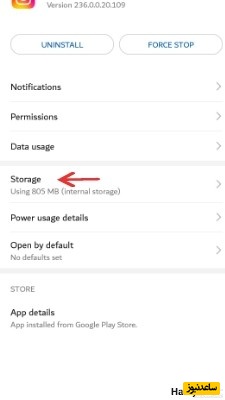 در صفحه ظاهر شده برای مشاهده میزان فضای استفاده شده توسط اینستاگرام گزینه storage را لمس نمایید.