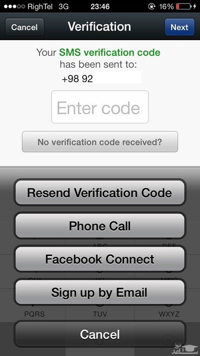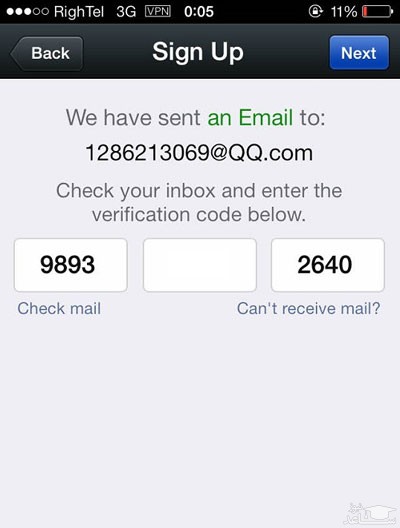 اگر هنوز کدی دریافت نکرده اید بر روی گزینه ی Can’t Recive Mail تپ کنید.بعد از وارد کردن کد بر روی Next تپ کنید.