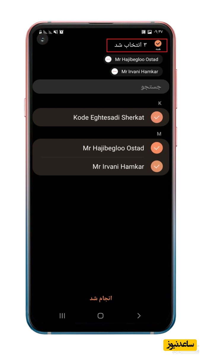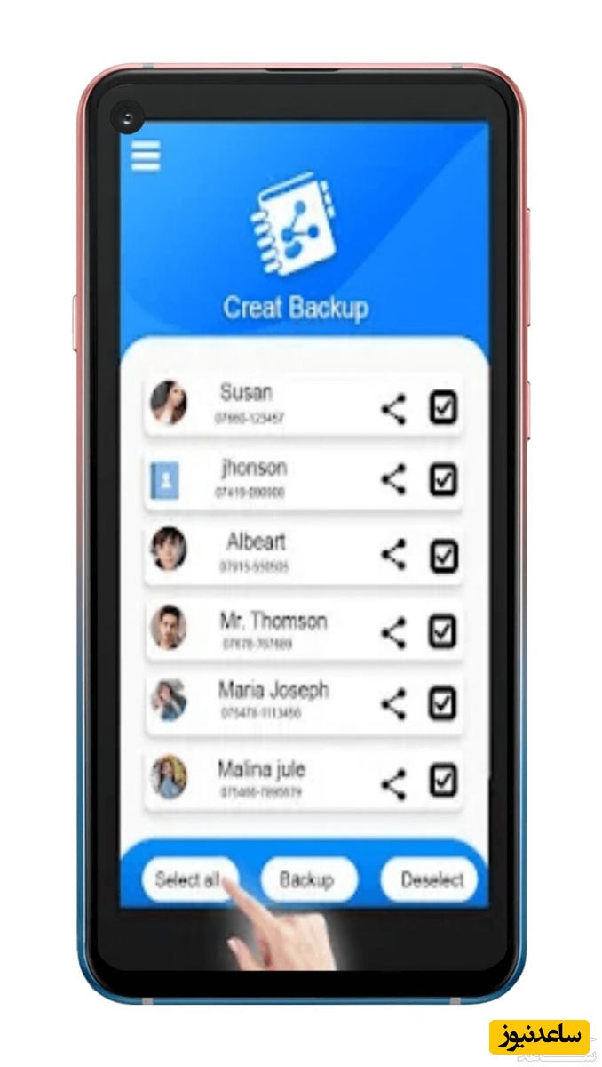 4. بعد از انتخاب محل ذخیره مخاطبینی که قصد انتقال آن ها را دارید لیست مخاطبین برای شما نمایش داده می شود و می توانید اسامی مخاطبین را انتخاب کنید.