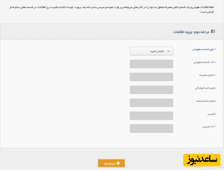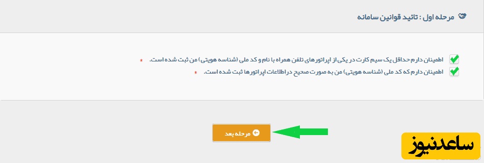 2- در قسمت پایین صفحه قوانین سامانه استعلام سرویس های مشترکین را تأیید و دکمه مرحله بعد را انتخاب نمایید.