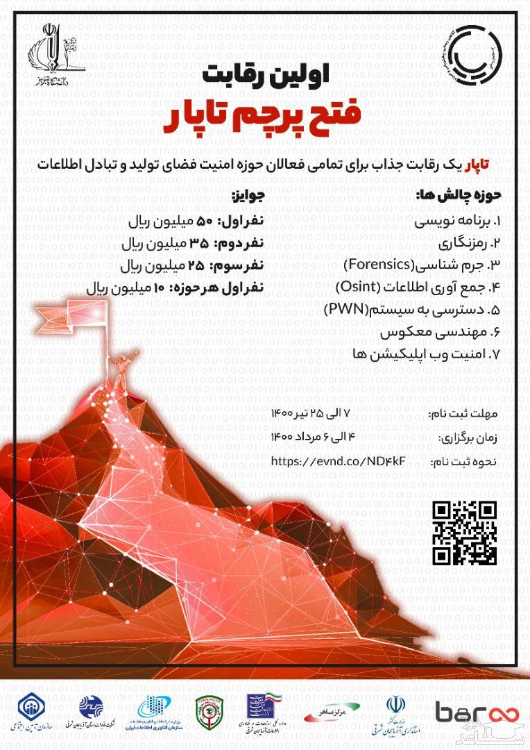 علاقمندان برای ثبت نام تا 25 تیر 1400 فرصت دارند به آدرس https://evnd.co/ND4kf مراجعه نمایند.