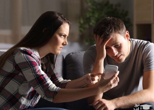 تلفن همراه شریک عاطفی خود را بررسی می کند و یا به انجام این کار تمایل دارد.