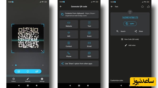 QR Easy: با QR Easy می توانید کدهای QR و بارکدها را مستقیماً اسکن کنید. این برنامه اسکنر همچنین می تواند کد QR را برای یک وب سایت ایجاد کند، اطلاعات تماس، شماره تلفن، آدرس ایمیل و غیره را ذخیره کرده و کد QR را در دستگاه شما ذخیره کند. حجم این برنامه بسیار کم است و حدود 2 مگابایت هست.