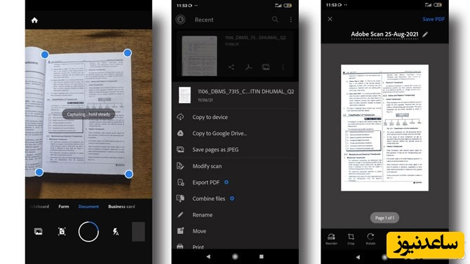 Adobe Scan: میلیون ها کاربر برای اسکن سریع برنامه “Adobe Scan” را نصب می کنند. این برنامه اسکنر به کاربران امکان می دهد هر نوع یادداشت، فرم، اسناد، رسیدها، تصاویر و موارد دیگر را در عرض چند ثانیه اسکن کنند. این نرم افزار یکی از بهترین اپلیکیشن های اسکن مدارک است که به شما امکان می دهد محتوای اسکن شده را به قالب JPEG یا PDF تبدیل کنید. علاوه بر این، می توانید نسخه های اسکن شده را برای افزایش کیفیت ویرایش کنید. همچنین شما می توانید از فیلترها استفاده کنید، طرح و اندازه ها را تنها با چند کلیک تغییر دهید و غیره. این برنامه برای کاربران اندروید و آیفون در دسترس است.