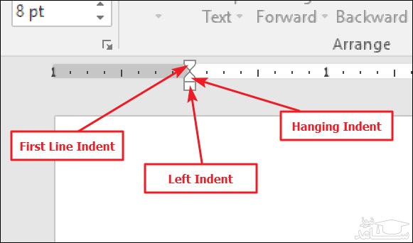 همچنین با جا به جا کردن «Hanging Indent» نیز می توان تو رفتگی های تمام خطوط را به جز خط اول پاراگراف، مشخص کرد.