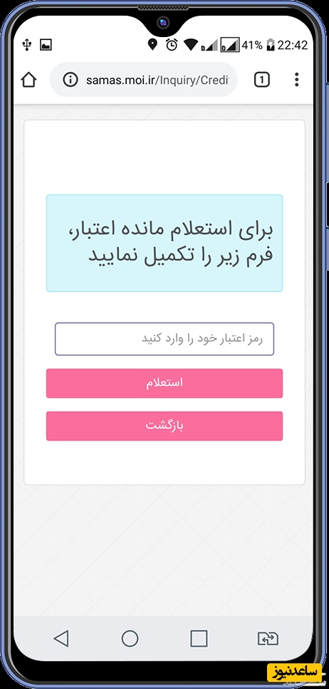 کد ملی خود را وارد کنید، پس از وارد کردن کد امنیتی، دکمه استعلام را لمس کنید.