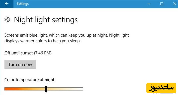 به گزارش سرویس تکنولوژی پایگاه خبری ساعدنیوز، صفحات نمایش نور روشن آبی رنگی ساتع می کنند که بسیار شبیه به نور خورشید است. این نور آبی ساعت داخلی بدن کاربر را فریب می دهد و مانع از ترشح ملاتونین در مغز می شود؛ در نتیجه باعث خواب آلودگی کاربر خواهد شد. قابلیت Night Light با تیره کردن و گرم تر کردن رنگ ها هنگام تاریکی شب، به خواب بهتر کاربر کمک می کند. مورد یادشده، نظریه ای است که در برخی موارد از آن حمایت شده است؛ اما انجام تحقیقات بیشتری در مورد این موضوع قطعا مفید خواهد بود. گذشته از خواب بهتر و به گزارش بسیاری از کاربران، استفاده از رنگ های ملایم تر به ویژه در اتاق های تاریک، قطعا مشاهده ی صفحه نمایش را برای چشمان راحت تر خواهد کرد.