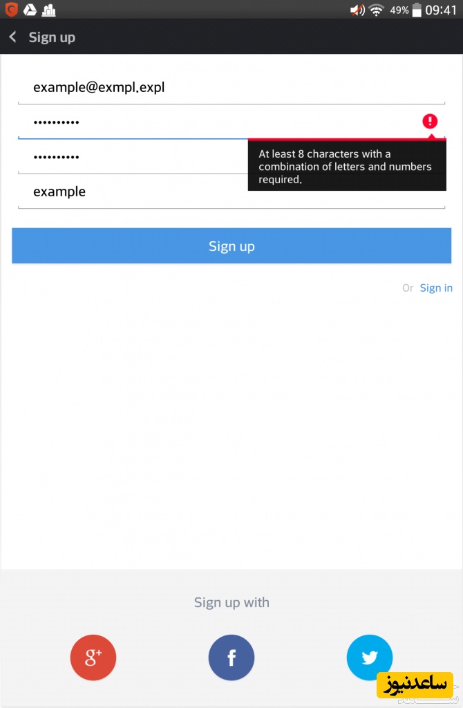 دقت داشته باشید که گذر واژه باید حداقل هشت کاراکتری و شامل حروف و اعداد باشد .
