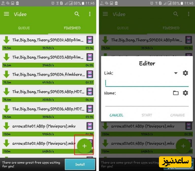 از سوی دیگر می توانید لینک دانلود فایل مورد نظر را کپی کنید. سپس به اپلیکیشن ADM مراجعه نموده و آیکون به شکل به علاوه در گوشه پایین و سمت راست صفحه را لمس نمایید.