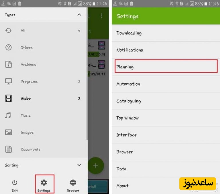 امکان زمان بندی دانلودها از دیگر قابلیت های برنامه ADM به شمار می رود. بنابراین کاربر می تواند تعیین کند که در چه زمانی دانلود آغاز و در چه زمانی متوقف شود. بدین منظور به بخش Settings در منوی برنامه مراجعه کرده و گزینه Planning را لمس نمایید.
