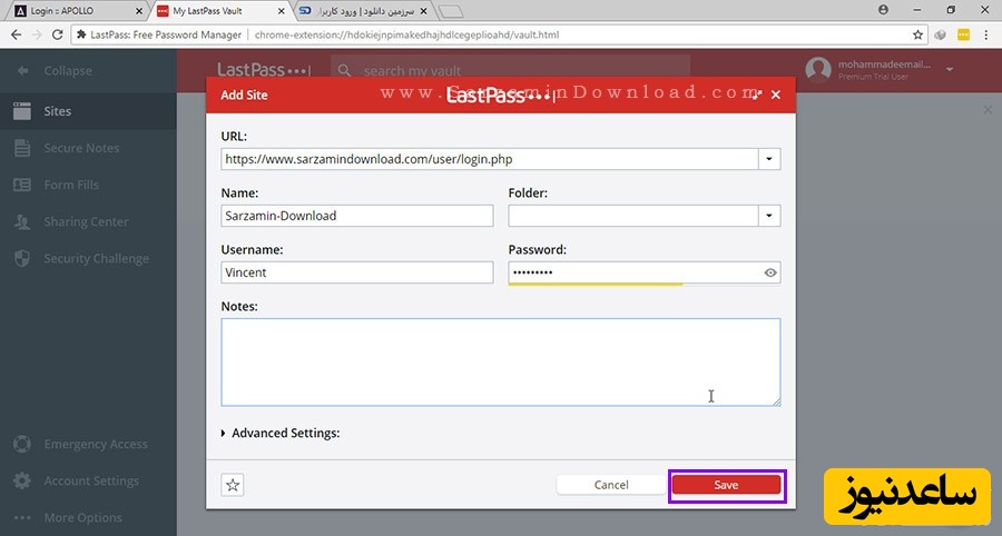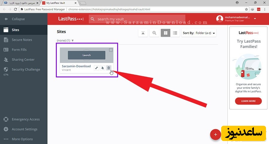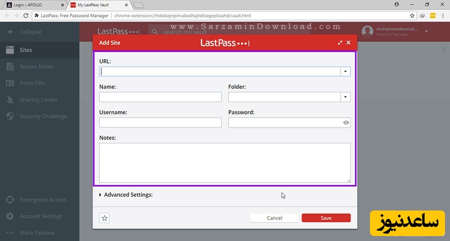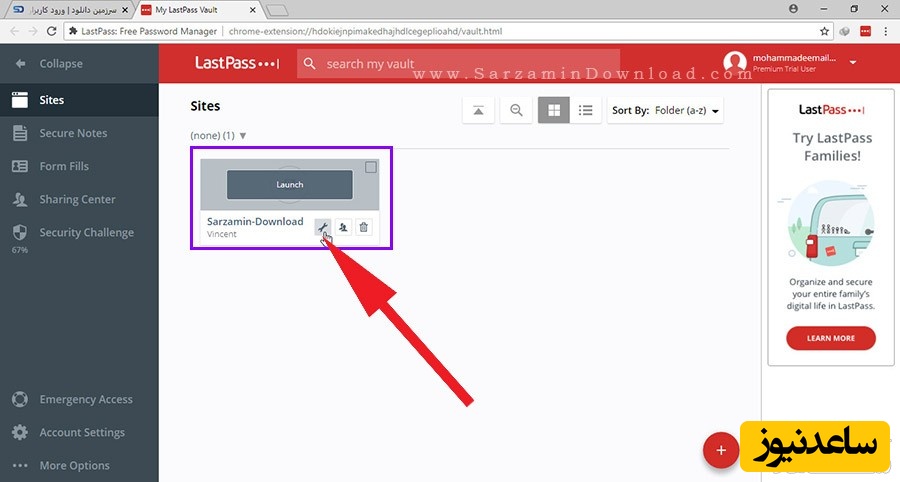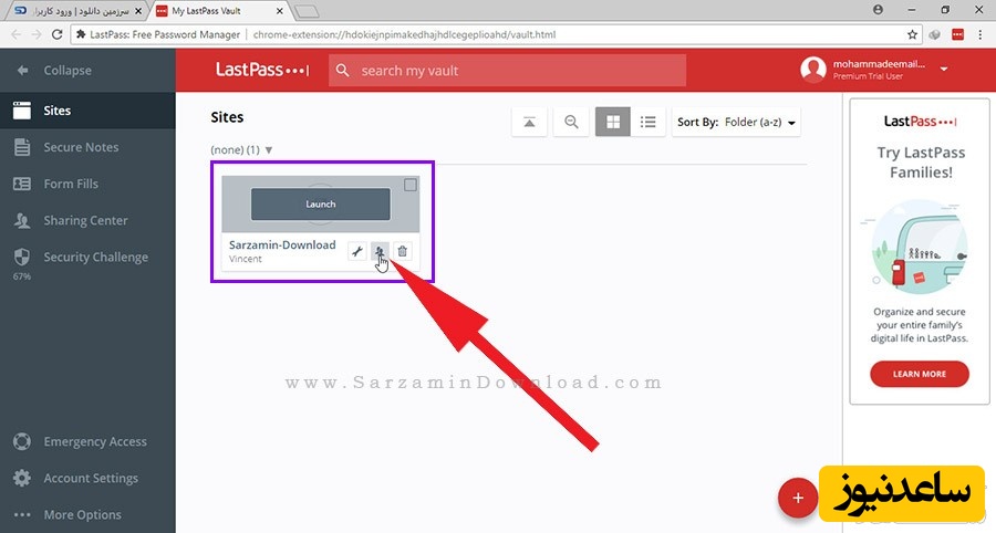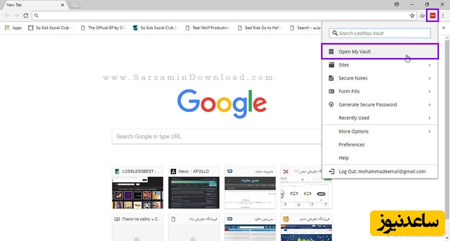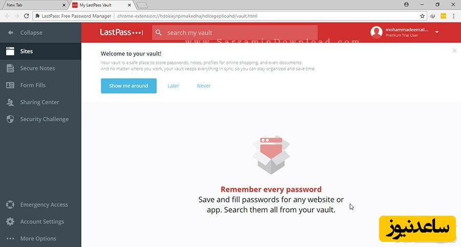 بر روی آیکن LastPass کلیک کنید. تا بخشی به شکل عکس زیر باز شود.