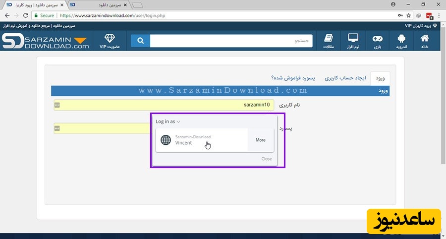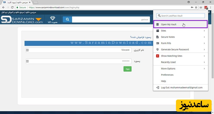 اکنون نام کاربری و رمز عبورمان برای این سایت ذخیره شده است. اکنون میخواهیم وارد این سایت شویم.