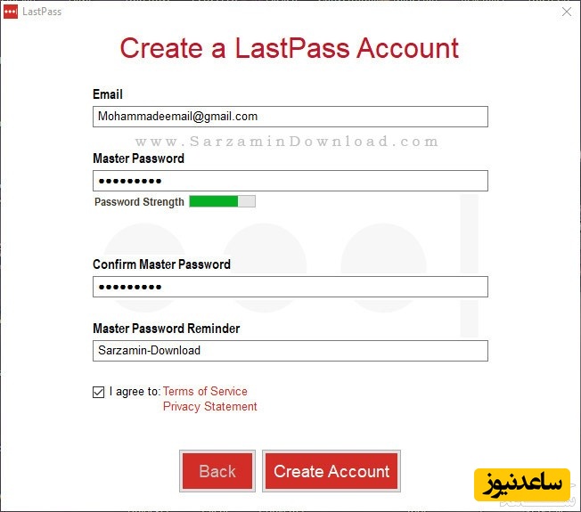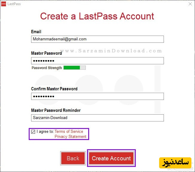فیلد ها را پر کرده، تیک گزینه ی “I Agree To” را بزنید و سپس “Create Account” را کلیک کنید.
