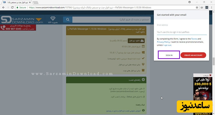 در این بخش”Sign In” را کلیک کنید.