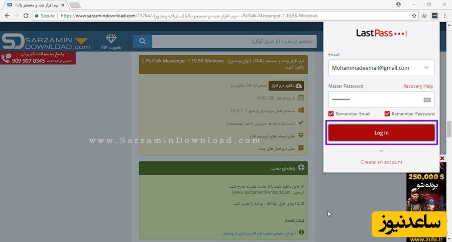 همچنین اگر میخواهید که دفعات بعد دیگر نیازی به وارد کردن ایمیل و رمز عبور نباشد، تیک گزینه های “Remember Email” و “Remember Password” را نیز بزنید.