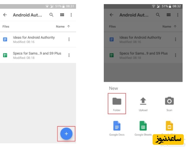 روش سازمان دهی پرونده ها در گوگل درایو کاملاً شبیه به همان کاری است که در رایانه انجام می دهیم. می توان اطلاعات را در یک پوشه واحد (My Drive) نگهداری کرد یا آن ها را به پوشه های مختلف انتقال داد. برای ساخت پوشه در وب سایت، روی گزینه «New» کلیک کرده و سپس «Folder» را انتخاب نمایید. شما همچنین می توانید با فشردن کلیک سمت راست روی پوشه درایو در رایانه، یک پوشه جدید ایجاد کنید. هنگام کار با تلفن همراه نیز با لمس علامت «+» و انتخاب گزینه «Folder»، یک پوشه جدید مطابق شکل زیر برای شما ظاهر می شود.
