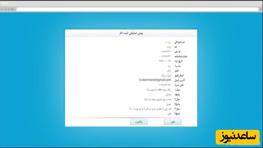 پس از ثبت اطلاعات ، در صفحه جدید از شما خواسته می شود اطلاعات خود را تایید نهایی کنید .