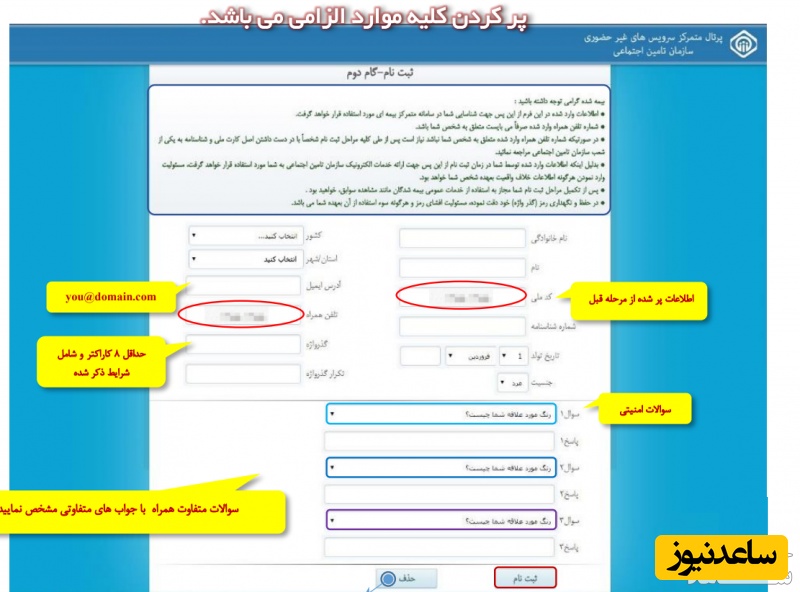 در این صفحه از شما خواسته شده تا اطلاعات شناسایی خود را به دقت وارد کنید :