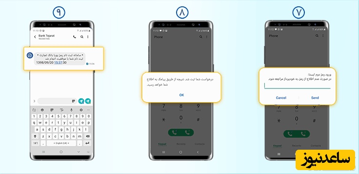 دریافت یک پیامک حاوی کد فعالسازی رمز پویا به شماره تلفن همراه (شماره ثبت شده مربوط به کارت)