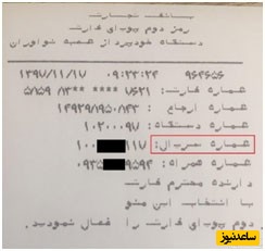 دریافت برگ رسید حاوی شماره سریال و شماره تلفن همراه مشتری از دستگاه