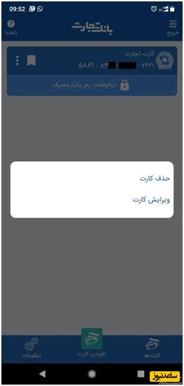 جهت حذف کارت یا ویرایش آن می توانید با انتخاب گزینه اقدام کنید.