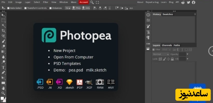 شما برای ورود به این برنامه به هیچ زیر ساختی نیاز ندارید و تنها کافیست که کلمه photopea را در گوگل سرچ کنید و سپس وارد صفحه این برنامه شوید و یا از طریق لینک www.photopea.com به طور مستقیم وارد صفحه نسخه تحت وب فتوشاپ شوید. این برنامه می تواند روی تمام نسخه های ویندوز، IOS، لپ تاپ، تبلت، مک بوک وگوشی موبایل نیز اجرا شود.