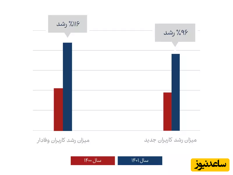 • در این گزارش میزان رشد کاربران جدید، 96٪ و میزان رشد کاربران وفادار، 116٪ ذکر شده است.