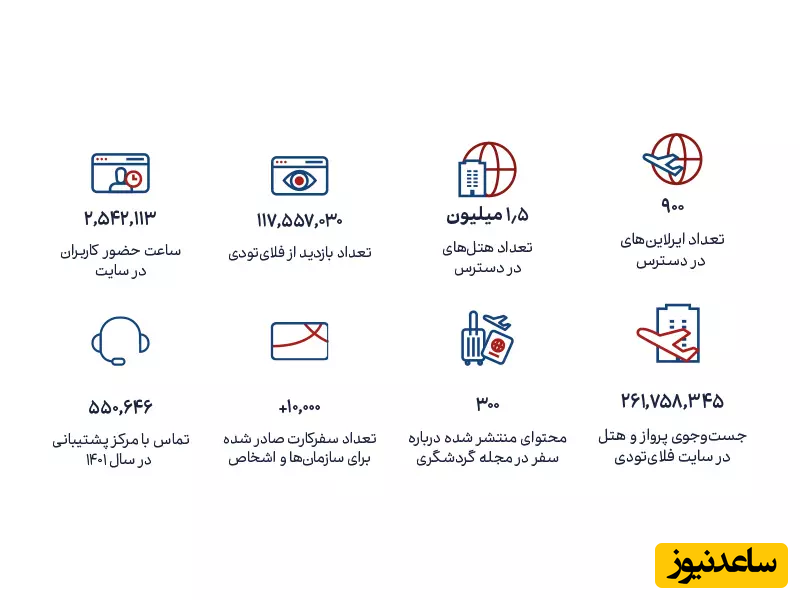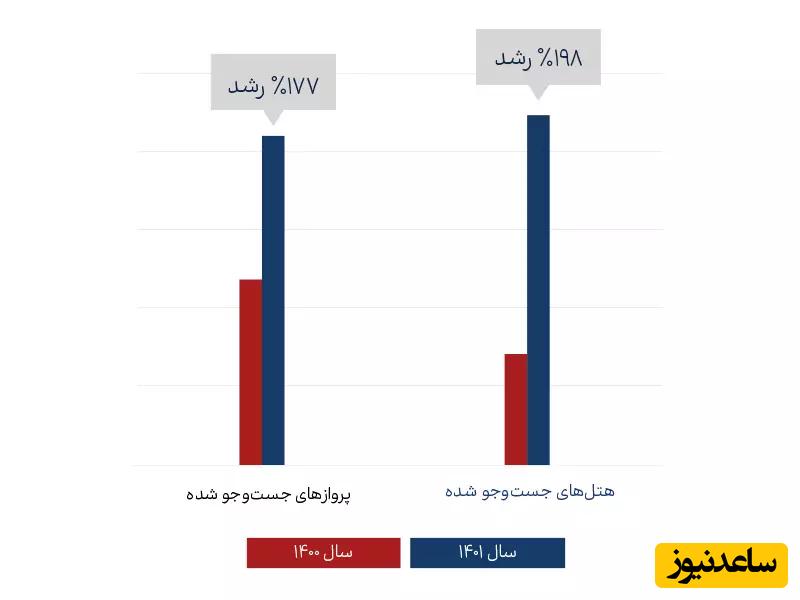 مجموع هتلهای جستوجو شده در سال 1401، حدود 198٪ و مجموع پروازهای جستوجو شده، 177٪ رشد داشتهاند. براساس این آمار، کاربران زیادی برای مقایسه قیمتها و پیدا کردن ارزانترین نرخ بلیط و هتل به این پلتفرم مراجعه کردهاند.