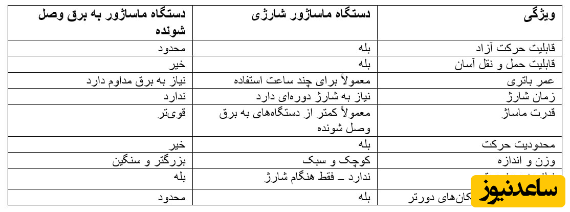 با توجه به این جدول، شما میتوانید نقاط قوت و ضعف هر دو نوع دستگاه ماساژور را برای نیازها و ترجیحات خود ارزیابی کنید و تصمیم بهتری برای خرید یا استفاده از یکی از آنها بگیرید.