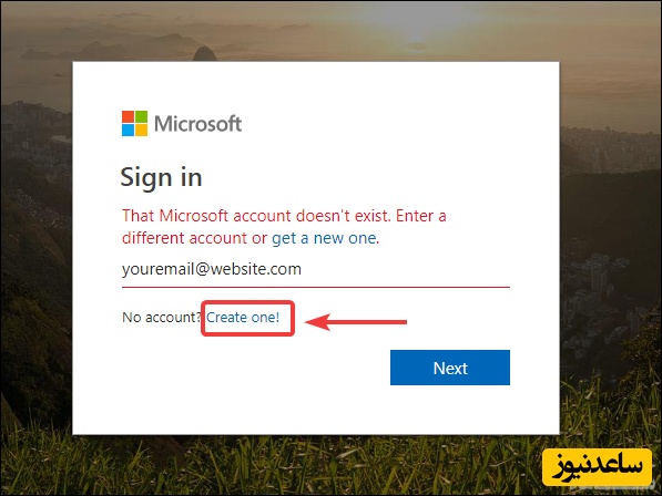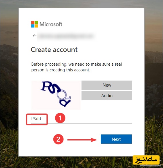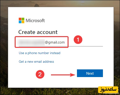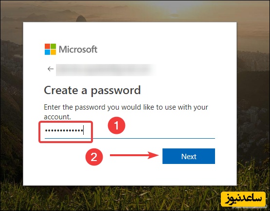 با کلیک روی Next فرآیند ساخت اکانت مایکروسافت را به پایان برسانید.