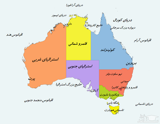 با نگاه کردن به نقشه استرالیا، شما سرزمینی وسیع و پهناور را مشاهده خواهید کرد که به 8 ایالت تقسیم بندی شده است. تراکم جمعیتی در این کشور، در شهرهای بزرگ که مراکز ایالت ها هستند بسیار بیشتر است، به گونه ای که می توان گفت در برخی از ایالت ها، بیشتر از نصف جمعیت در این شهرها توزیع شده اند.