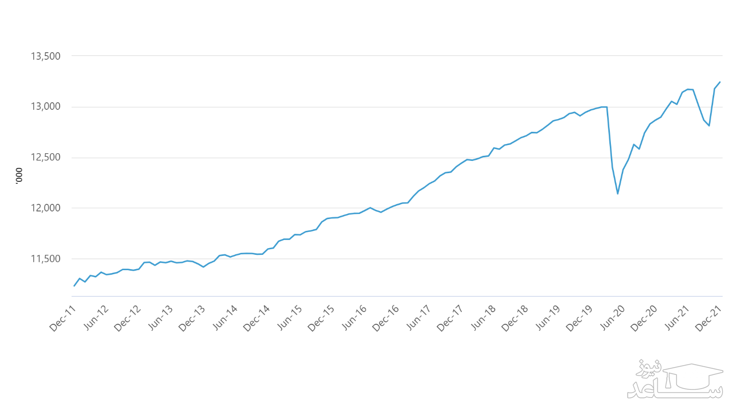 کاهش0.5 درصدی نرخ بیکاری باعث افزایش نرخ اشتغال به همین اندازه در این کشور شده که این تغییرات منجر به مشغول شدن 64000 نفر دیگر به کار شده است. بر همین اساس می توان گفت بیش از 13 میلیون نفر در این کشور مشغول به کار هستند. در صورتی که به بررسی دقیق تر روند اشتغال شهروندان و افراد مقیم این کشور علاقه مند هستید، بهتر است نمودار زیر را بررسی کنید.