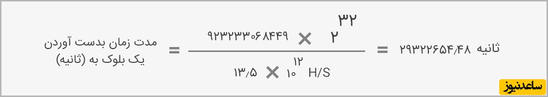 مدت زمان تولید یک بلوک معتبر و اتصال آن به زنجیرهبلوکی این گونه به دست میآید: