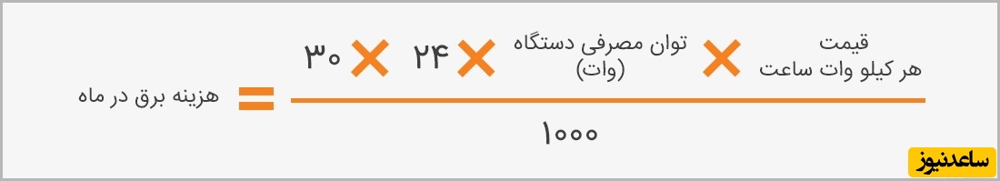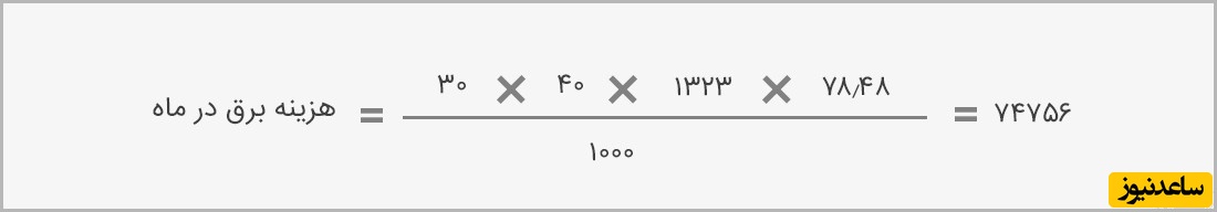 هزینه برق مصرفی در ماه چنین است:
