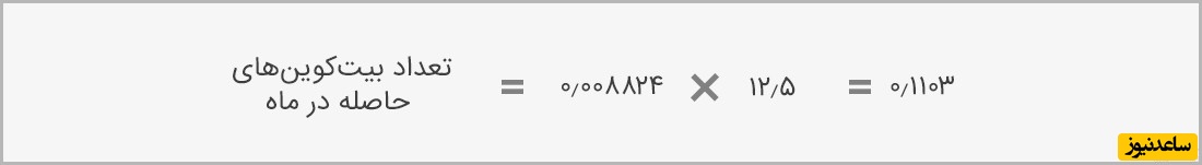 با توجه به قیمت هر بیتکوین درآمد ماهانه برابر خواهد بود با:
