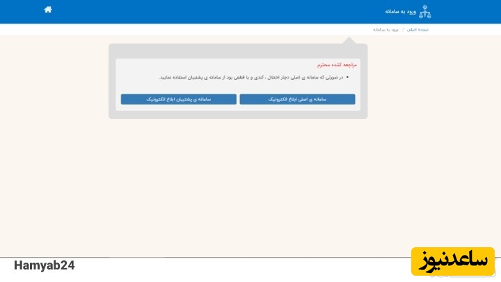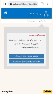 یکی از سامانه های اصلی یا سامانه پشتیبان ابلاغ را انتخاب کنید.