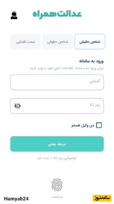 ابتدا برنامه عدالت همراه را باز کنید. سپس کد ملی و رمز عبور خود را بزنید و گزینه مرحله بعد را انتخاب کنید.