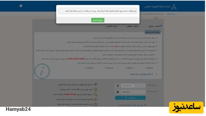 در این مرحله یک رمز عبور موقت به گوشی همراه شما ارسال می شود آن را در کادر مربوطه وارد کنید و روی گزینه ورود بزنید.