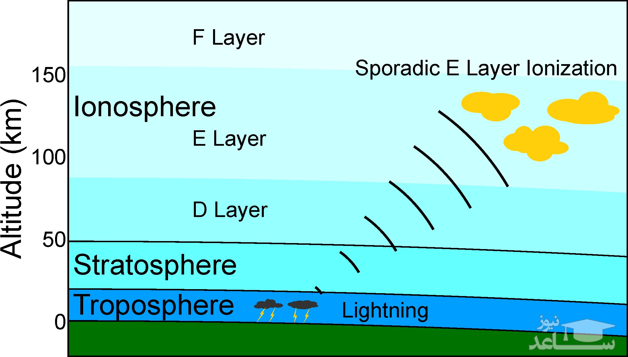 در ارتفاعهای بسیار بالا، پرتوهای پرانرژی خورشید، بهویژه پرتوهای فرابنفش و ایکس بهندرت با اتمی برخورد میکنند تا الکترونها را از آن جدا کنند؛ اما هرچه به سطح زمین نزدیکتر شویم، غلظت جو و تعداد اتمها بیشتر میشود و بالطبع، پرتوهای پرانرژی خورشید میتوانند الکترونهای بیشتری را برانگیخته و از اتمها جدا کنند، اما هرچه تراکم و در نتیجه تعداد اتمها بیشتر باشد، فرایند عکس یونیزاسیون، یعنی بازترکیبی هم بیشتر میشود و الکترون آزاد به دام یون مثبتی میافتد که در همان نزدیکی است.