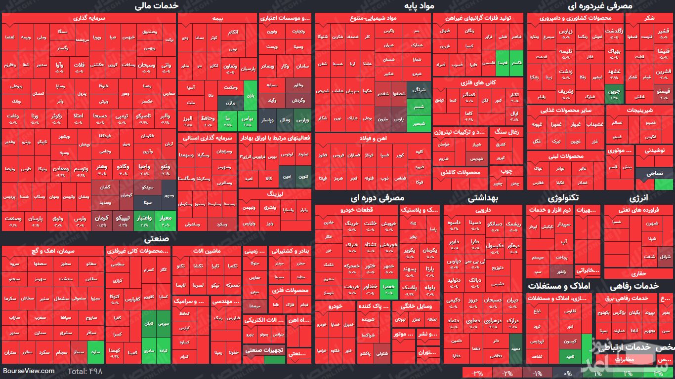 آخرین قیمت ۱۳نماد حداقل سه درصد نسبت به قیمت روز قبل آن ها افزایش یافته و ۴۵۴نماد با کاهش بیش از سه درصدی قیمت همراه بوده اند.