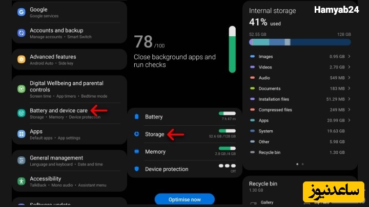 گزینه Battery and device care را انتخاب کنید.